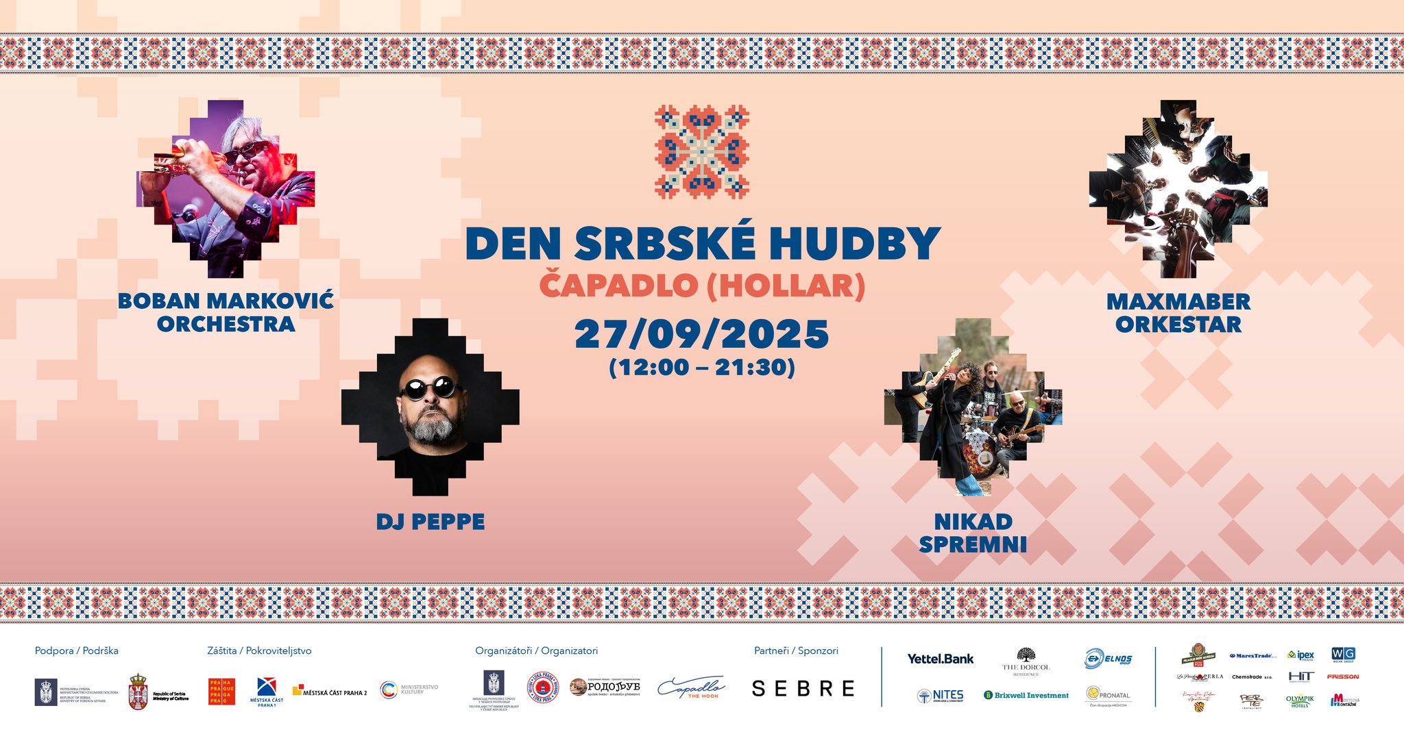 DEN SRBSKÉ HUDBY je srdcem 2. ročníku Měsíce srbské kultury v Praze. V sobotu 27. 9. 2025 se od 12:00 do 21:30 promění Čapadlo (Hollar) v živou promenádu balkánských rytmů – od punkového nářezu po noblesní dechovkové fanfáry. Vstup je zdarma.